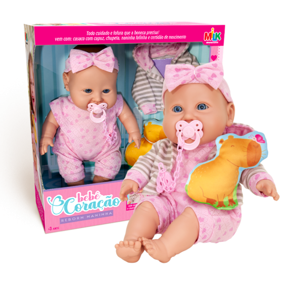 BONECA CORACAO REBORN NANINHA 38CM - MILK BRINQUEDOS