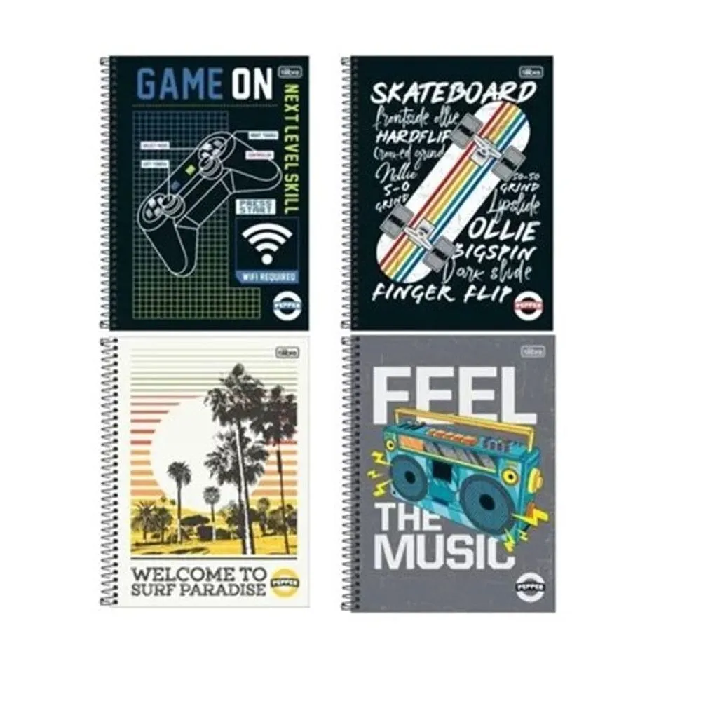 CADERNO ESPIRAL CAPA DURA 20 MATERIAS COM 320 FOLHAS PEPPER MASCULINO - TILIBRA