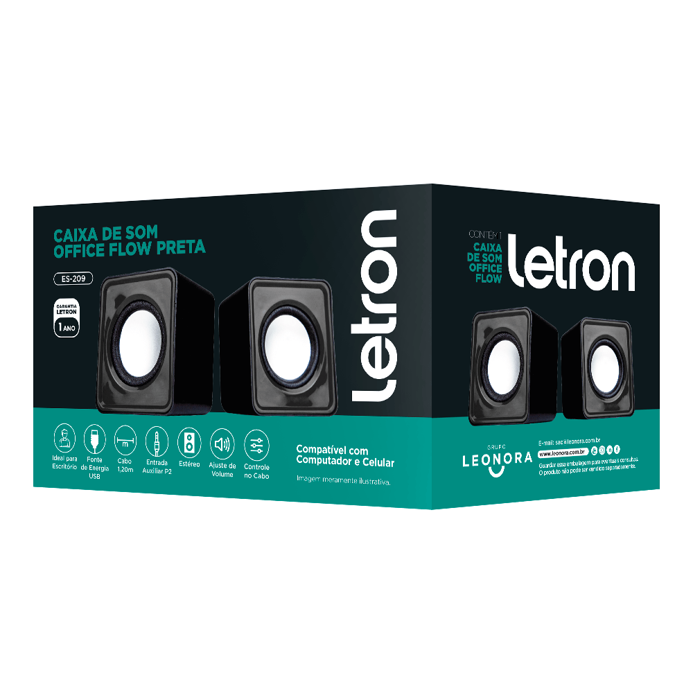 CAIXA DE SOM OFFICE FLOW PRETO ESTEREO ALTO FALANTE USB - LETRON
