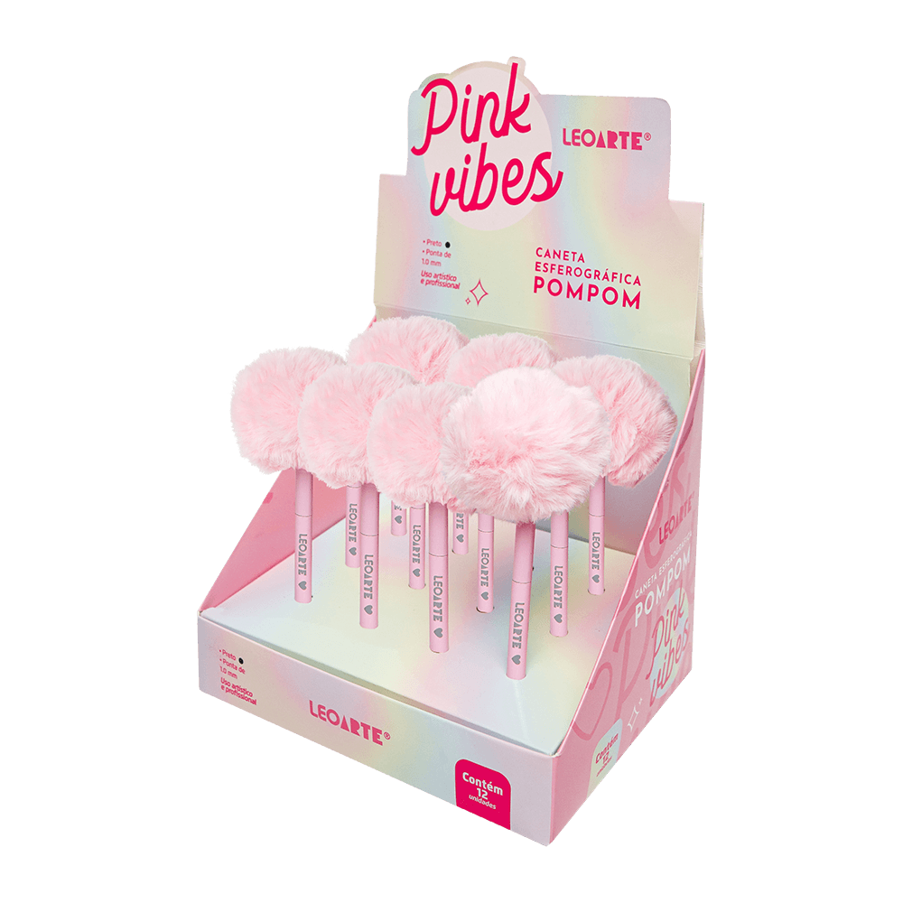 CANETA CORPO METAL POMPOM PINK VIBES - LEOARTE