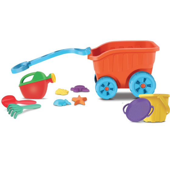 CARRIOLA C/ BALDE + REGADOR C/ ACESSORIOS 10 PECAS 41CM - DIVER TOYS