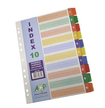 DIVISÓRIAS PLÁSTICAS PARA FICHÁRIO 4 FUROS UNIVERSITÁRIO INDEX COM 10 CORES - ACP