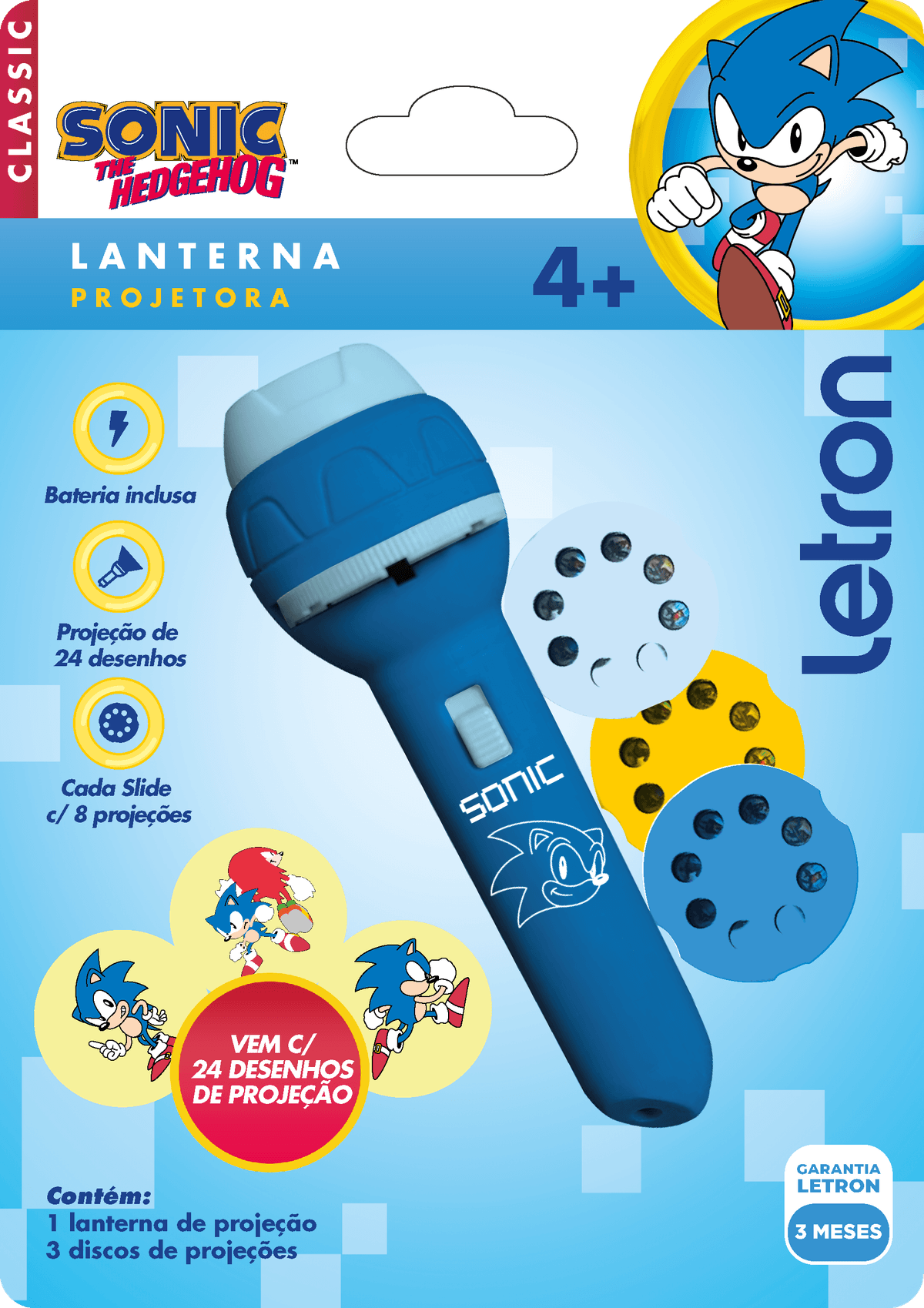 LANTERNA PROJETORA SONIC BLISTER C/ 1 UND + 3 SLIDES - LETRON