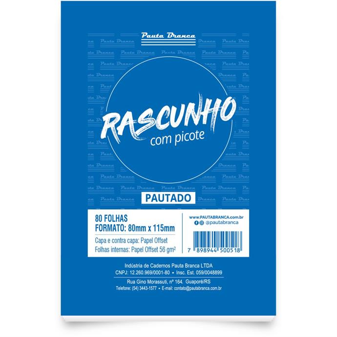 TALAO RASCUNHO COM PICOTE COM PAUTA 80X115MM COM 80 FOLHAS - PAUTA BRANCA