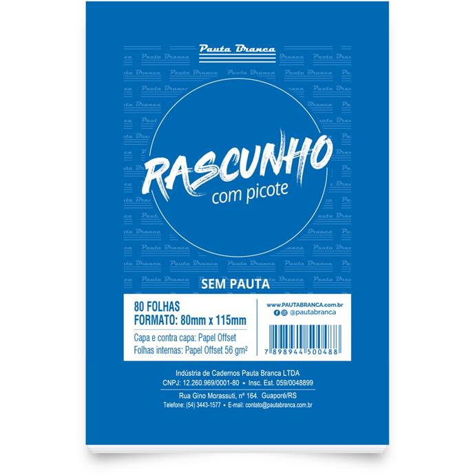 TALAO RASCUNHO COM PICOTE SEM PAUTA 80X115MM COM 80 FOLHAS - PAUTA BRANCA